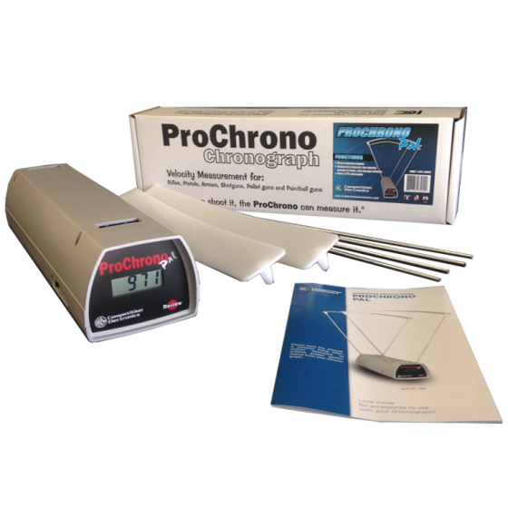 The ProChrono Pal accurately measures the velocity of almost anything that shoots at an economical price with its large shooting area and simple setup. Requires one 9 volt battery for operation. Everything is included for outdoor use. For indoor use, we recommend our optional Indoor Lighting System Velocity Range: 21-7,000 feet per second Temperature Range: 32-100 degrees Fahrenheit Size: 16 x 4 x 3-1/4 inches Battery Required: One 9-volt alkaline battery (not included) Mounting Hole Thread: 1/4 x 20 Guide Wire Size: 3/16 x 16 inches Memory Capacity: 99 shots Minimum Time Between Shots:Between 250 mSec and 500 mSec Shot Timing Resolution: 750 nSec Crystal Controlled Accuracy: +/-1% of measured velocity, or better Current Consumption: Approx. 15mA